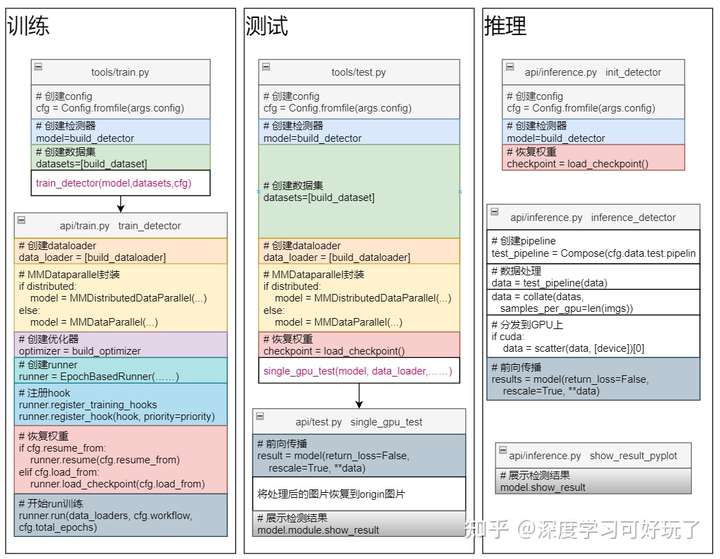 mmdetection主要对外提供三个API接口,定义在`tools`和`mmdet/api`文件夹下